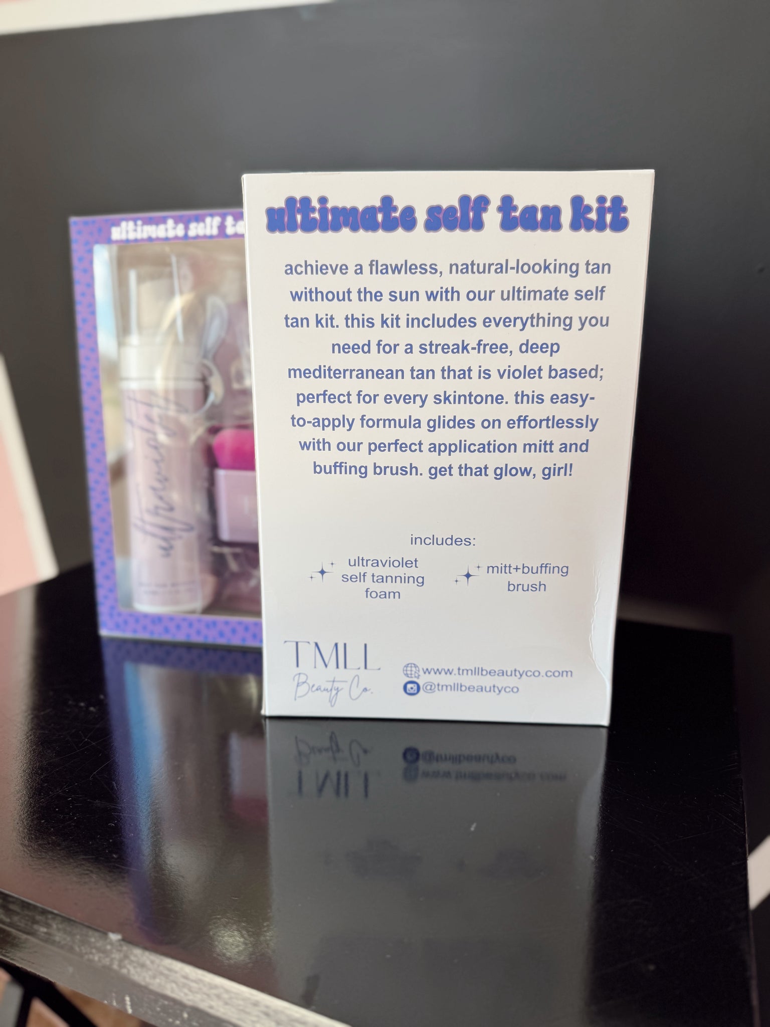 Our ultimate self tan kit includes our full size viral violet based Ultraviolet Self Tan foam and double sided velvet mitt with a bonus contour and blending brush for the perfect tan, every time.