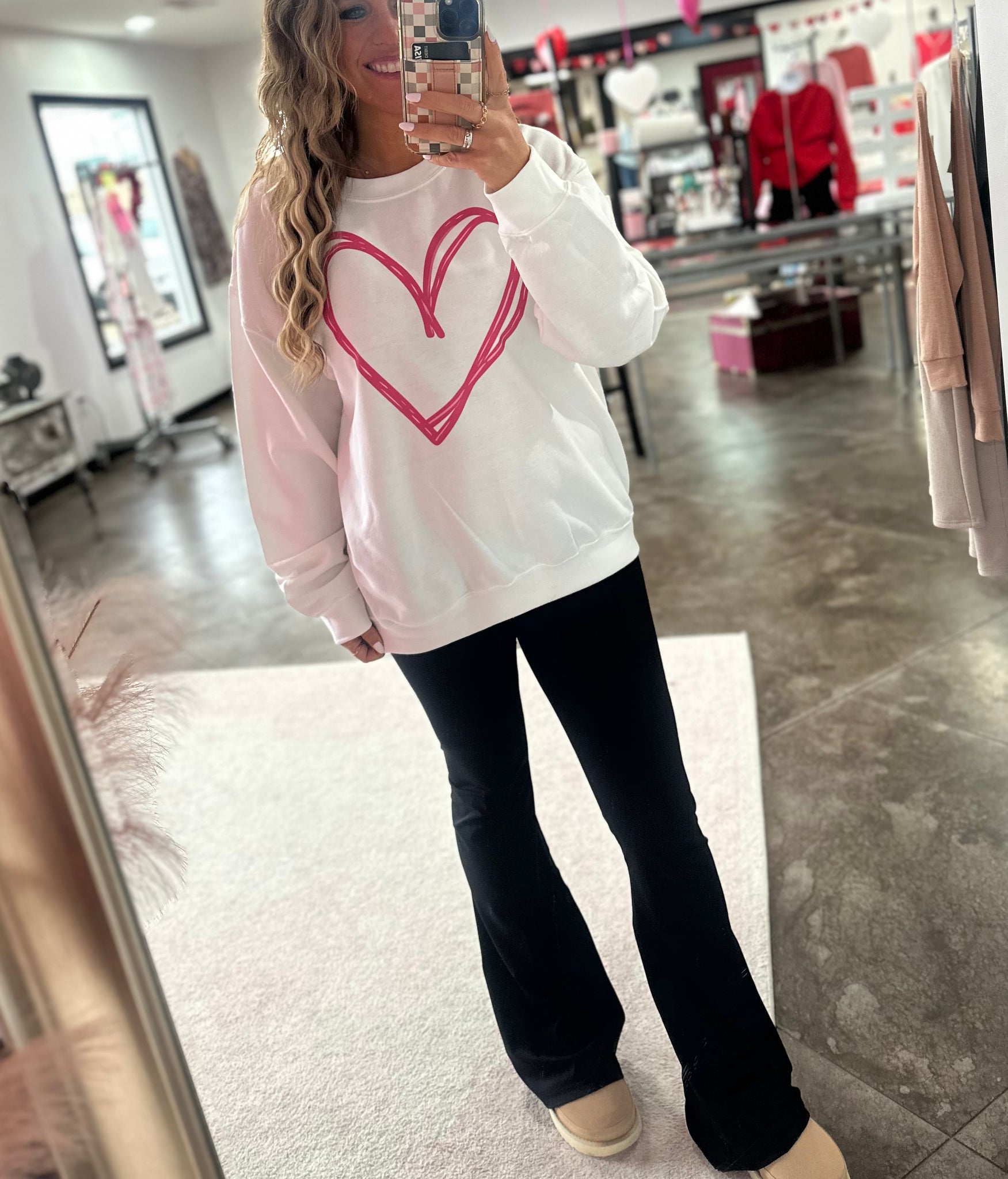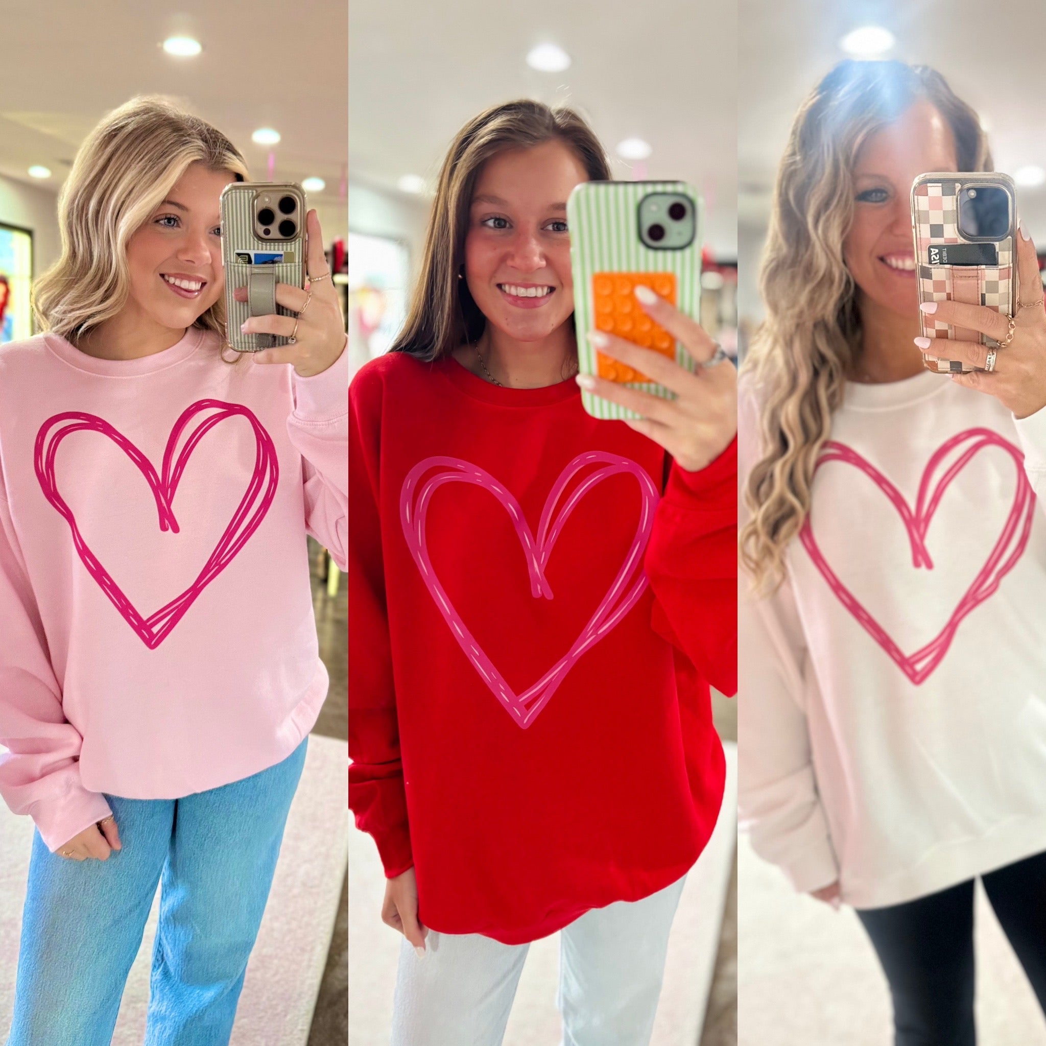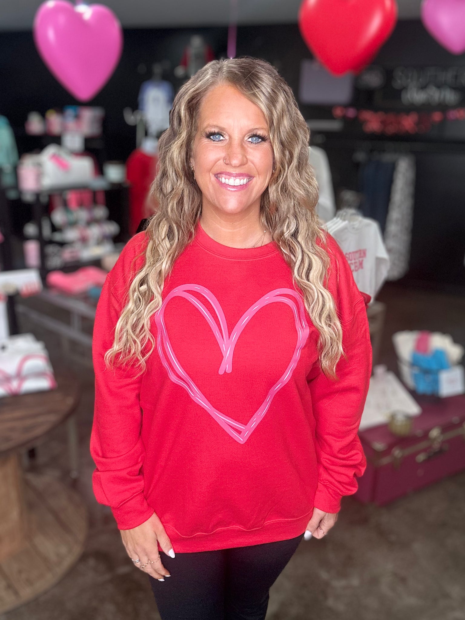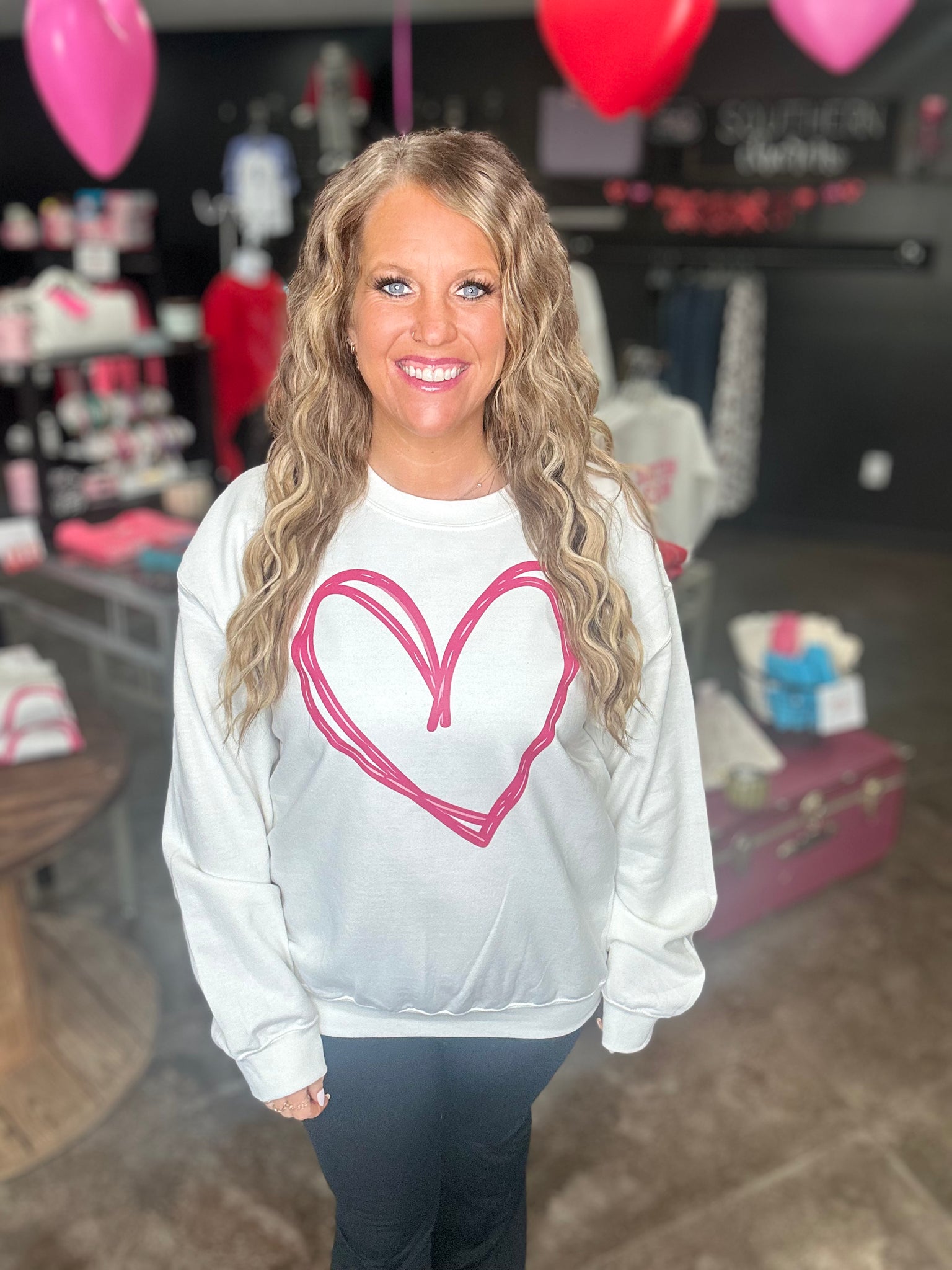 Big heart, cute sweatshirt. This heart sweatshirt can be strictly for Valentine's Day OR you can wear it year around with the cutest, scribbled heart design on the front. The sweatshirts are gildan brand, known to shrink a little and they are super soft.