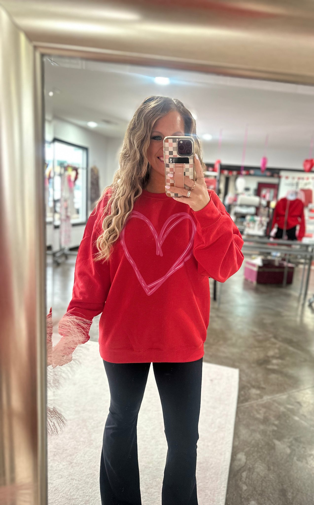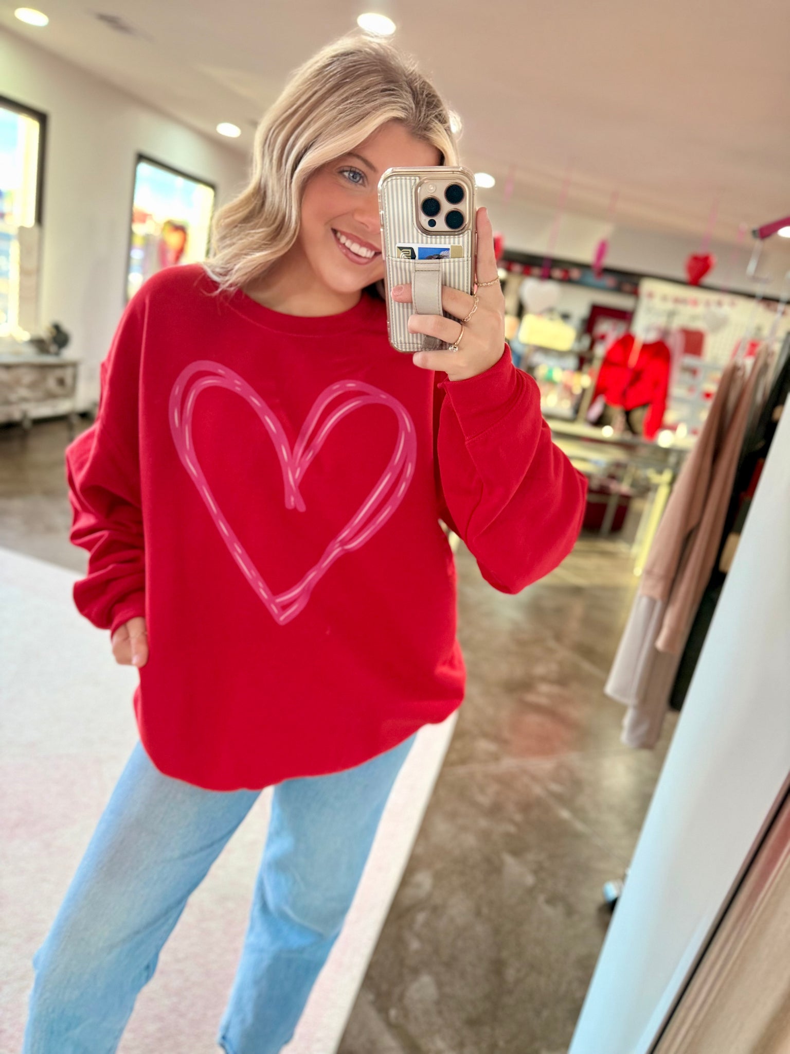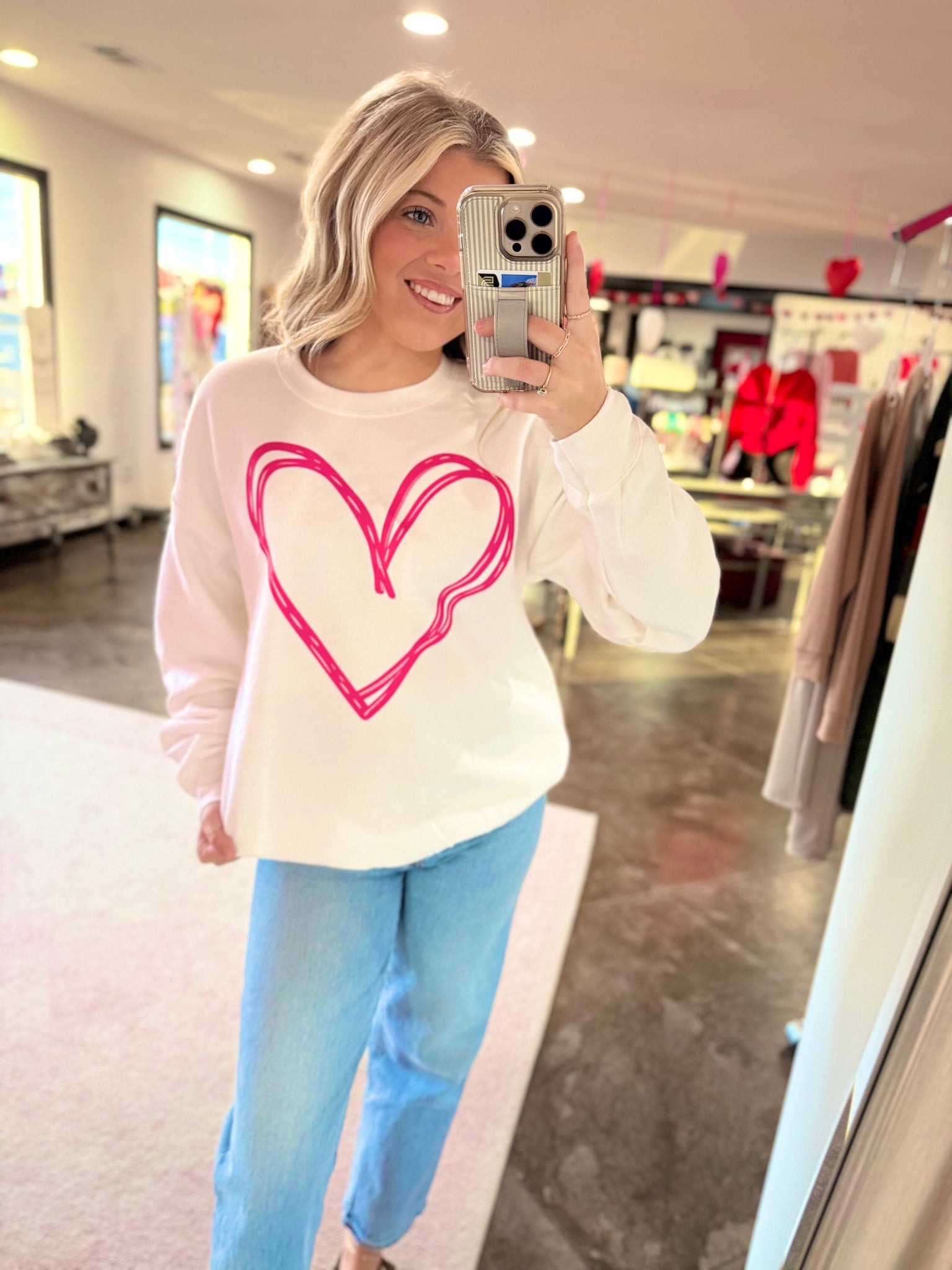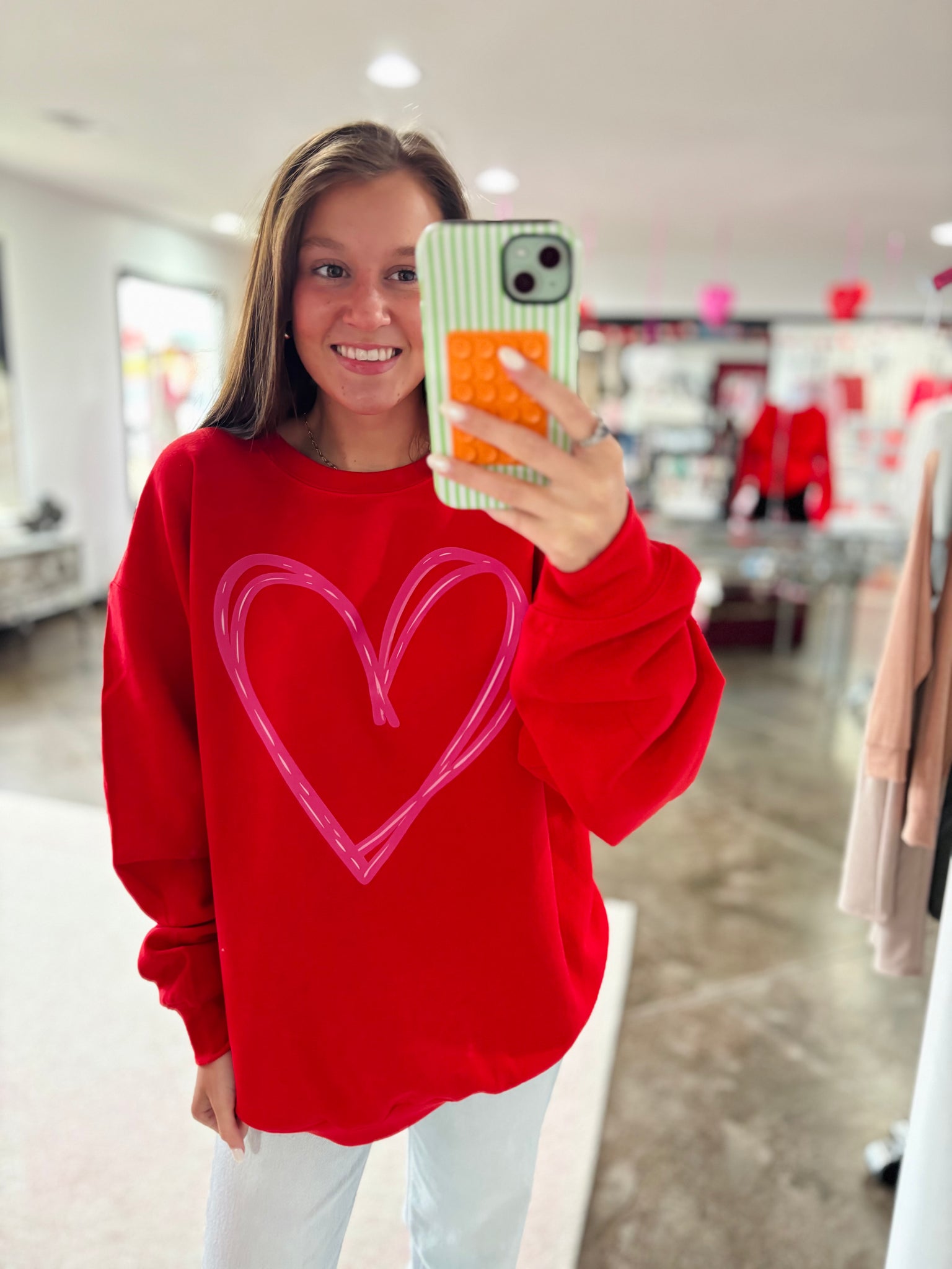 Big heart, cute sweatshirt. This heart sweatshirt can be strictly for Valentine's Day OR you can wear it year around with the cutest, scribbled heart design on the front. The sweatshirts are gildan brand, known to shrink a little and they are super soft.