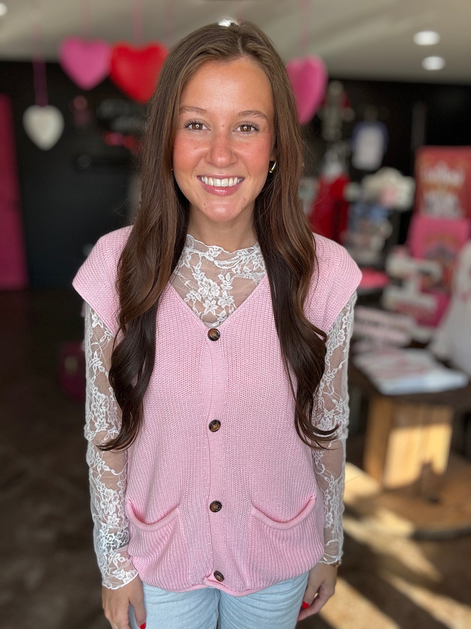 This is a white sheer lace top. It has a mock neck and slim fit! This is the perfect top for layering!